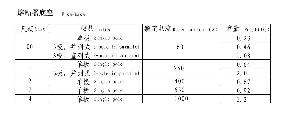 本系列熔断器能与国外符合IEC、DIN标准的同类熔断器完全互换。
