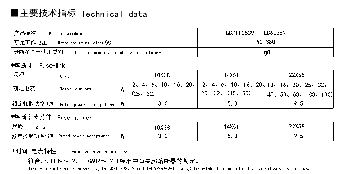本系列熔断器由高分断能力圆筒形帽熔断体和熔断器支持件组成。