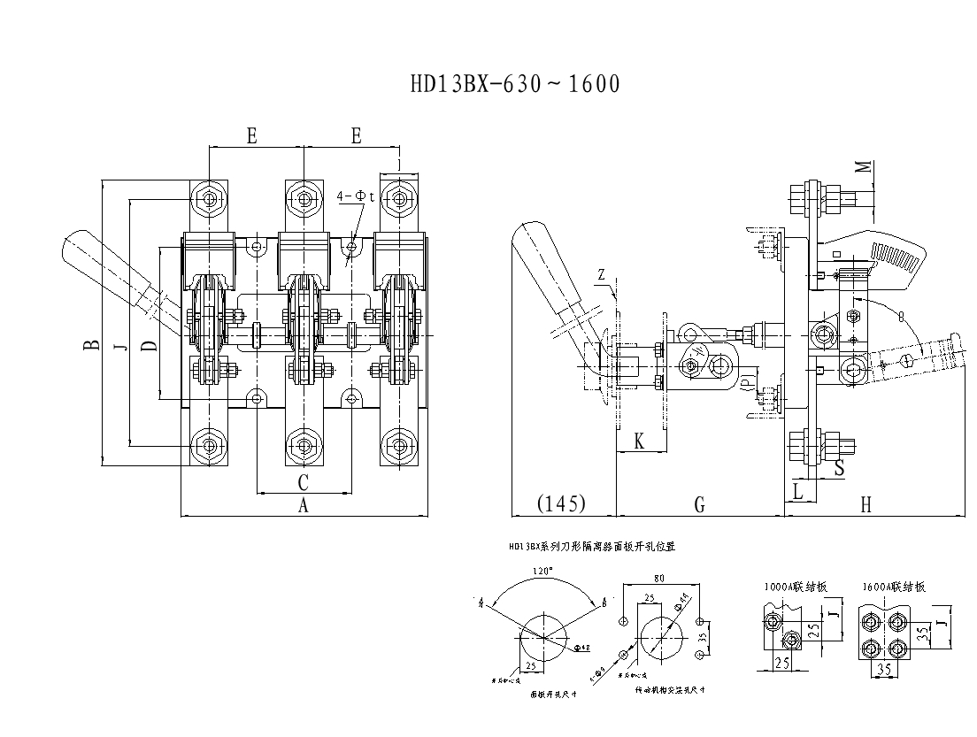 HD13B(BX)系列刀形隔离器适用于额定工作电压为交流380V,额定频率50Hz,额定工作电流至1600A。主要用于工业企业的配电设备中,用于接通或分断线路或者作为隔离开关之用。